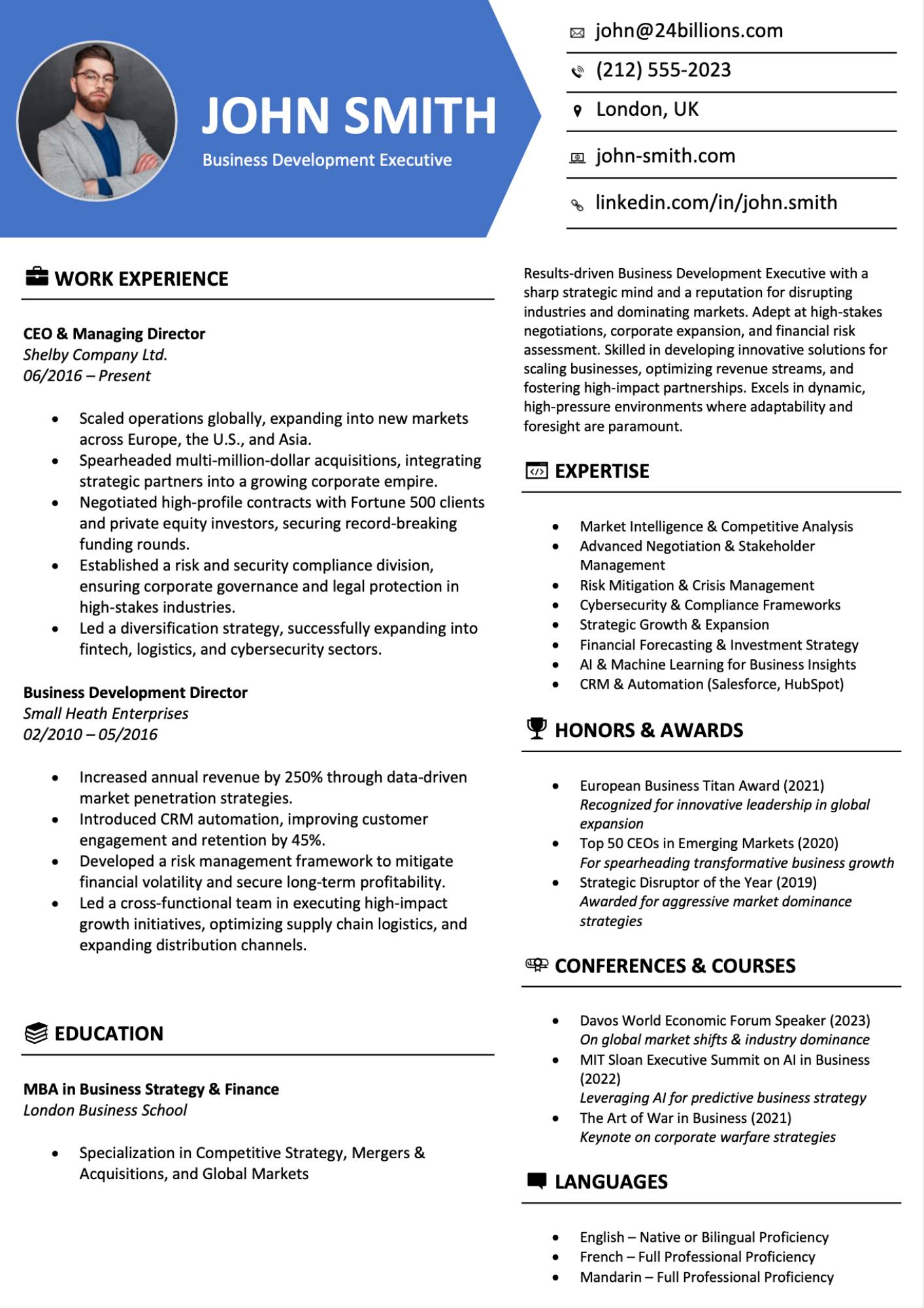 Business Resume Example