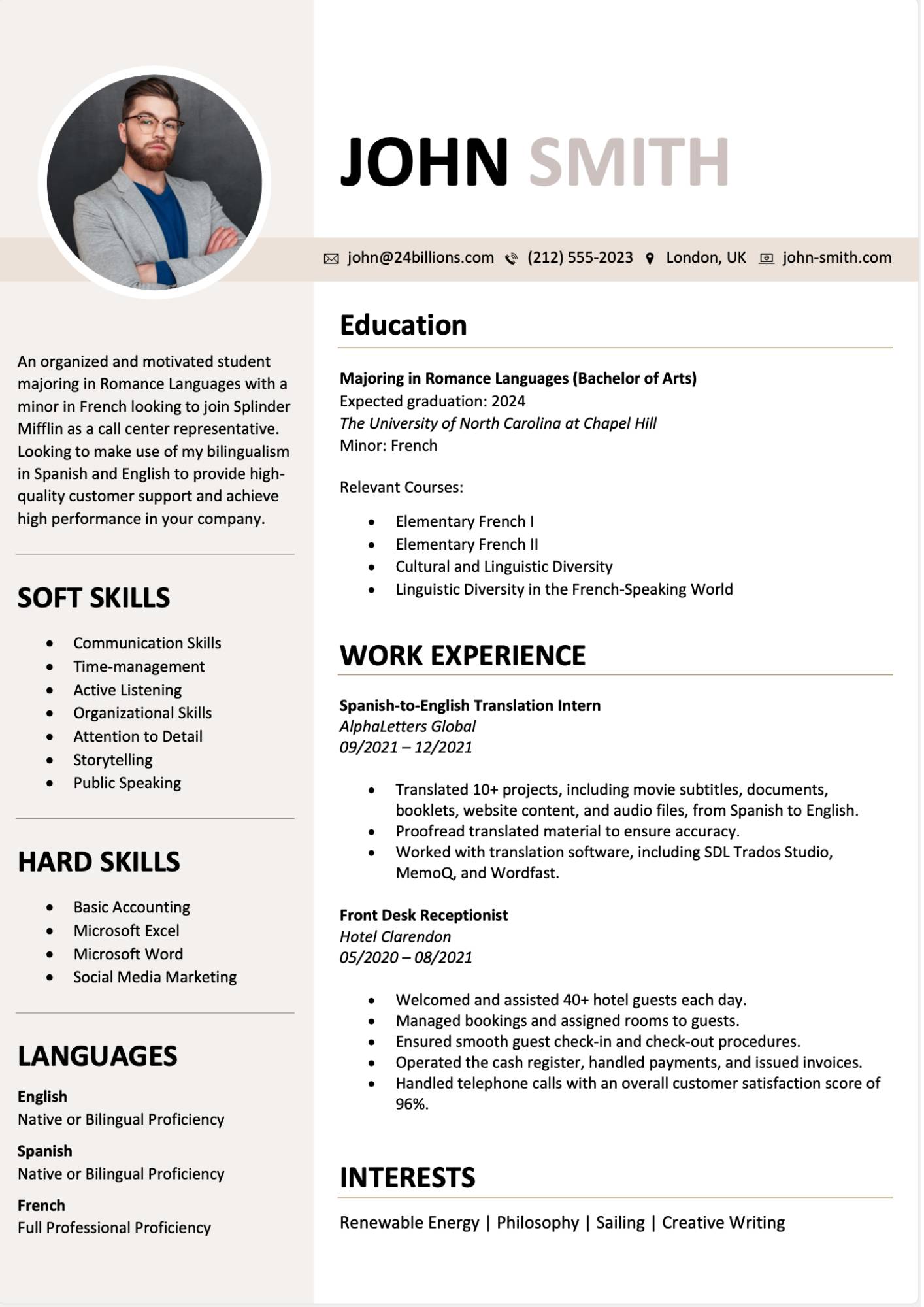 College Resume Example