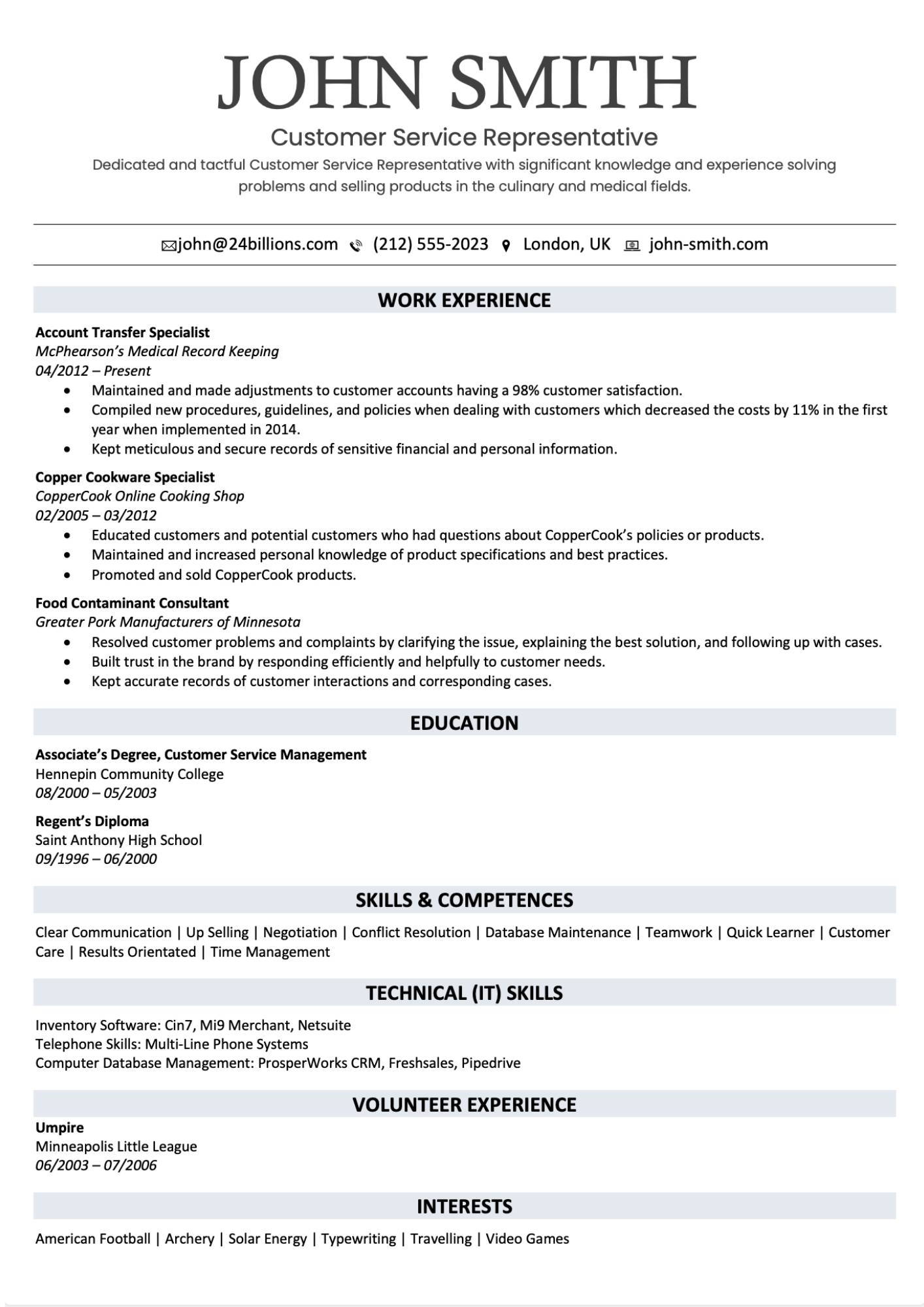 Customer Service Resume Example