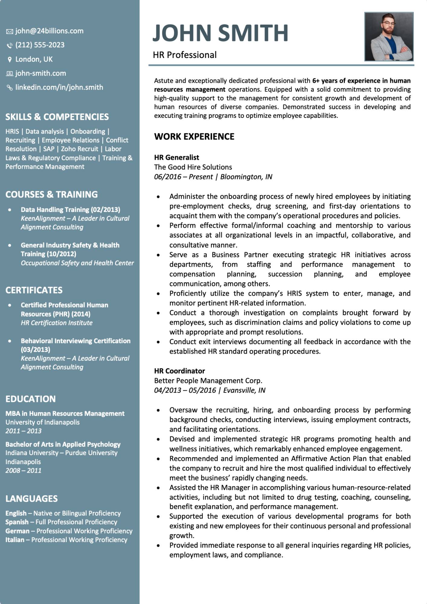 HR Resume Example